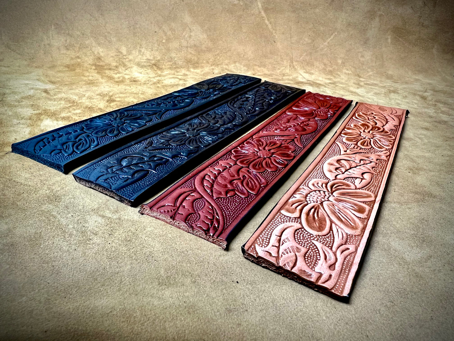 Our historic western belts have been made the same way since 1938 when Bennie and Velma Looper founded Looper Leather Goods Co. Inc. All of our western belts are made using USA raw stock cow hide, 11+ ounces thick and include a solid brass buckle. Each belt style is available in 4 different drum dyed, struck through colors. All belts measure 1.5 inches in width and are available from size 30 to size 68.